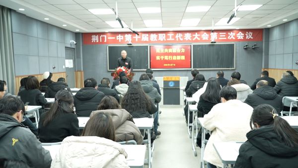 为深入贯彻落实习近平总书记关于教育的重要论述,坚持依法治校、民主治校,凝聚全校教职工智慧与力量,推动学校高质量特色内涵发展,2月7日,荆门市第一中学第十届教职工代表大会第三次会议在学校录播室隆重召开。学校党委书记谢泽滔,校长马斌,党委副书记、副校长高兴华,副校长陶先斌、王瀚卿,党委委员严春丽等校领导及全体教职工代表出席会议,会议由党委委员、工会主席习虎主持。