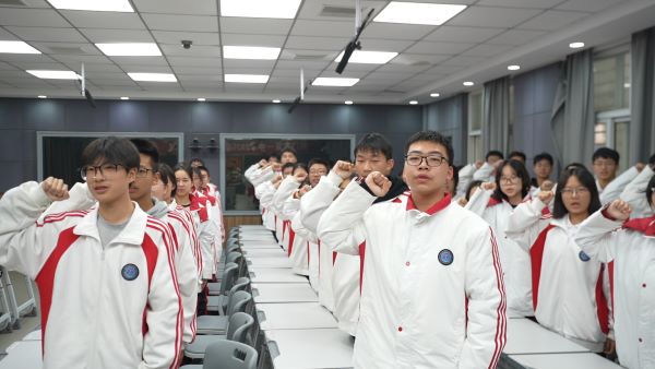 “阳光班”班主任汪浩代表全体老师发言。他承诺在学业上为同学们答疑解惑,在生活中给予关怀,在思想上做好引导,成为同学们人生路上的 “引路人”与“守护者”。