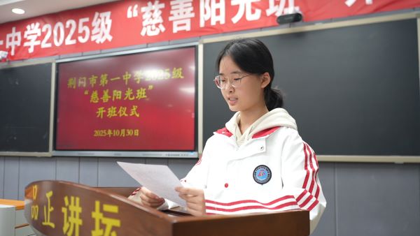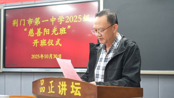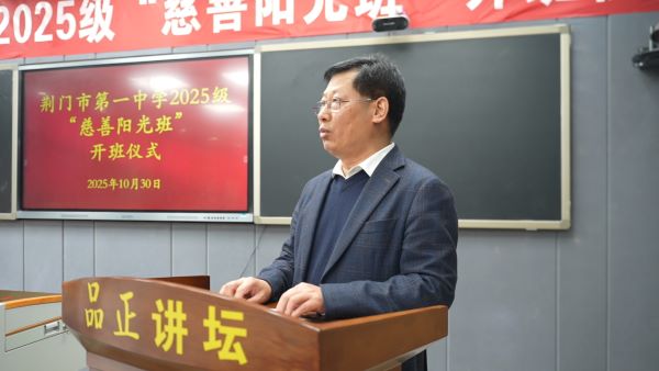 10月30日,荆门一中2025级“湖北慈善阳光班”举行开班仪式。荆门市政协原副主席、市慈善总会会长李本全,市慈善总会常务副会长刘启荣出席活动。